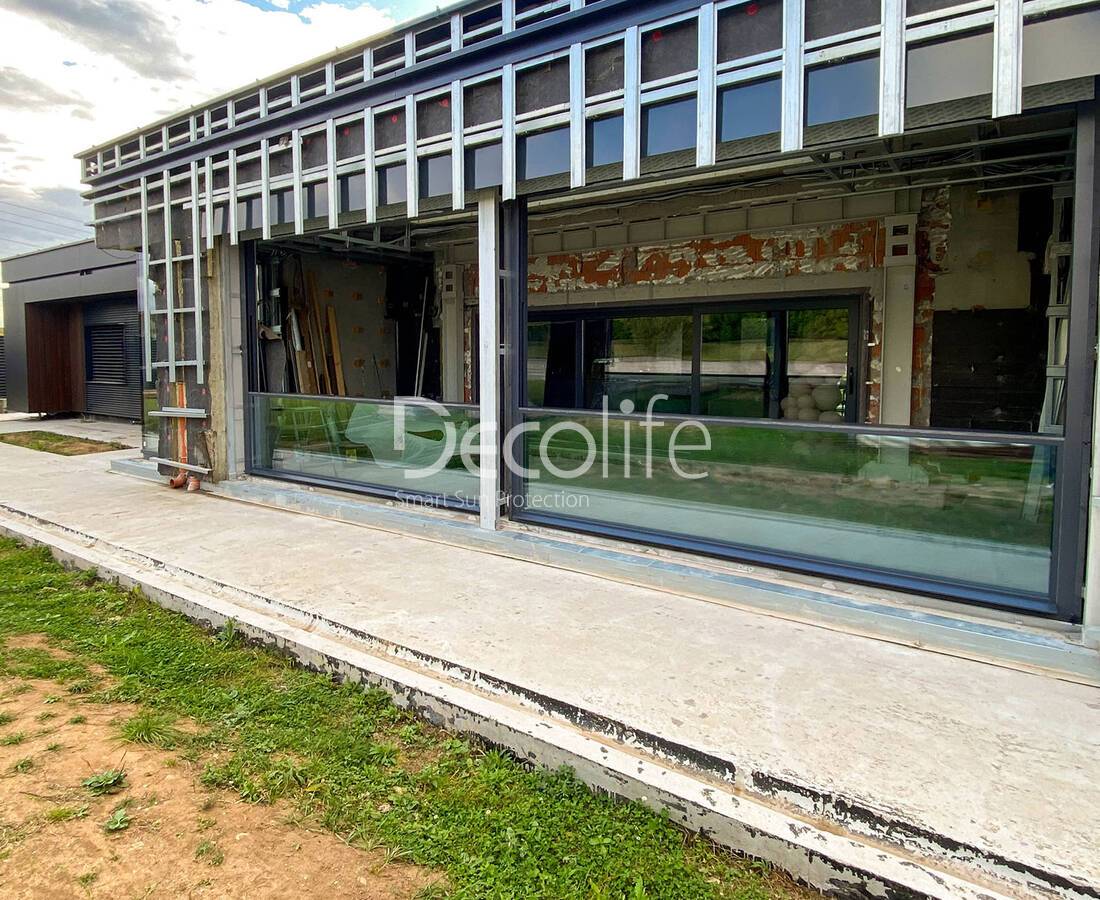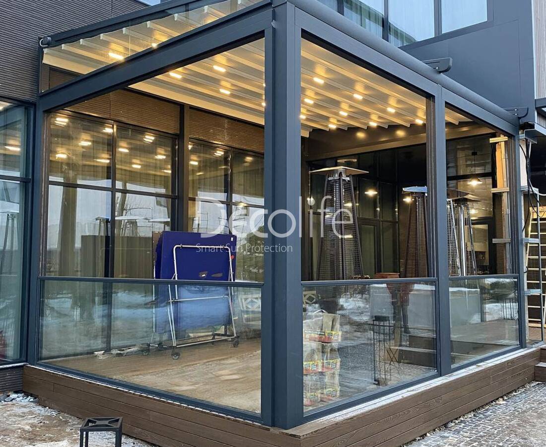 Пергола тентовая Decolife Project Light + Подъемное остекление W500 - реализовано партнером "ООО Люкс Террас" - Московская обл.